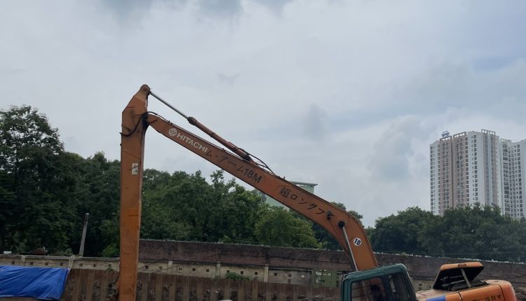 Thuê máy xúc – Thi công trường THCS Hoàng Liệt Hoàng Mai Hà Nội